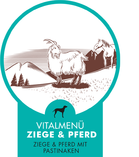 RyDog Vitalmenü Ziege & Pferd – een menu met twee ongewone soorten vlees. Geit en paard, verfijnd met pastinaak, spinazie, rode bessen en paardenbloem – een maaltijd om van te smullen.